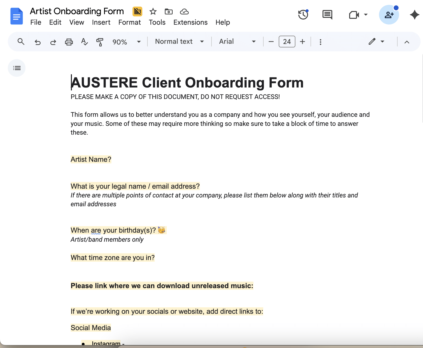 Click the form image below, make a copy of the doc, fill it out and email it to team@byaustere.com